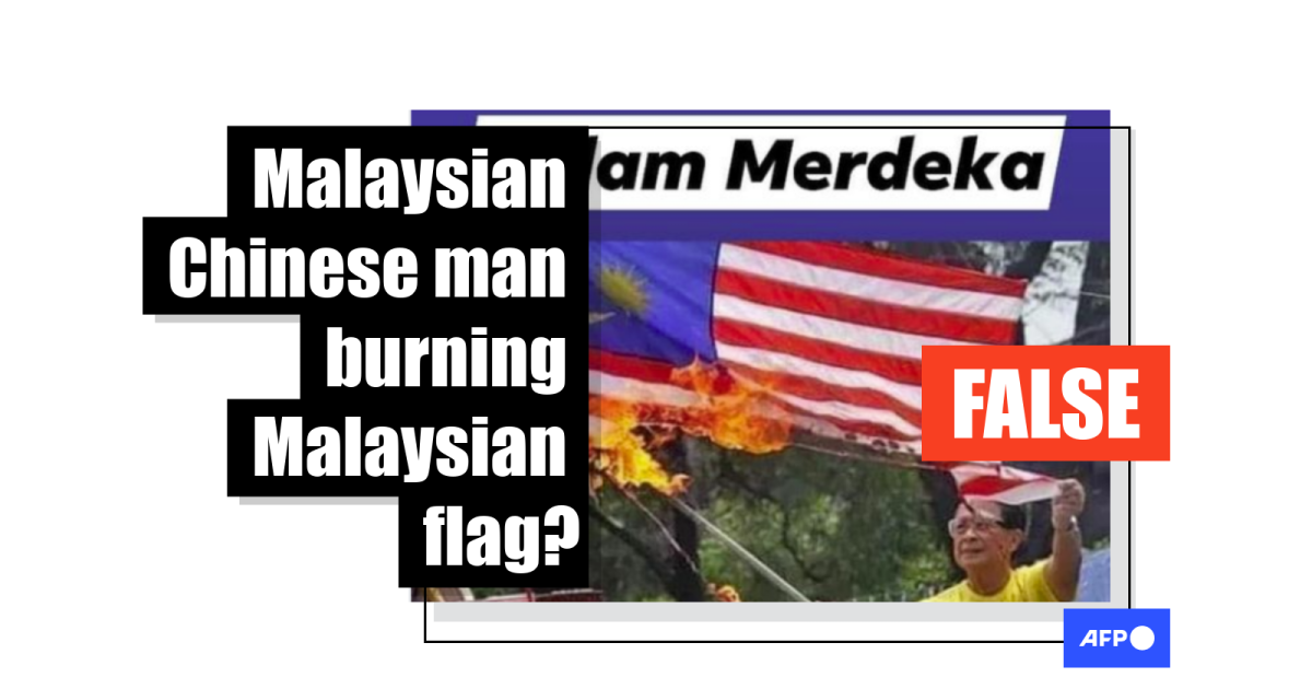 This photo has circulated in reports about a Filipino man burning a Malaysian flag in a protest