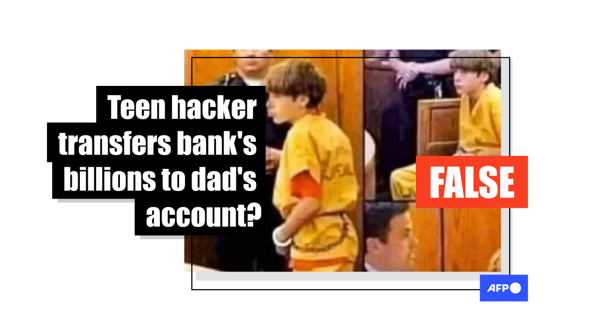 “13-year-old hacks a Swiss bank and transfers $73 billon to his father’s account. This is the righteous offspring,” reads the caption, translated from Arabic.