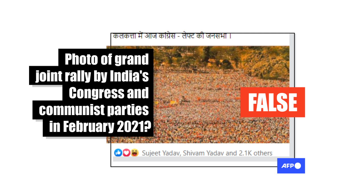 The post refers to a recent rally that was organised by India’s main opposition Indian National Congress (INC) party and the Communist Party of India - Marxist's (CPI-M) Left Front. The rally was held on February 28, 2021, in Kolkata, the capital city of West Bengal state, ahead of the state's assembly election, as reported here by The Indian Express.