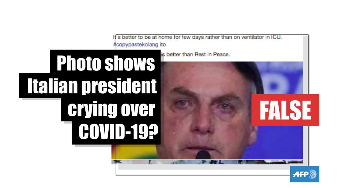 The caption states, in part: “Just look at the crying president of #Italy. Italy has the most advance health care facilities but they failed to control #Corona because they were taking it as a joke in initial days & today their president cried that they are short of space for burying dead bodies of Corona victims? Ctto."