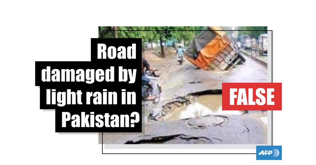This photo shows a damaged road in India -- not Pakistan