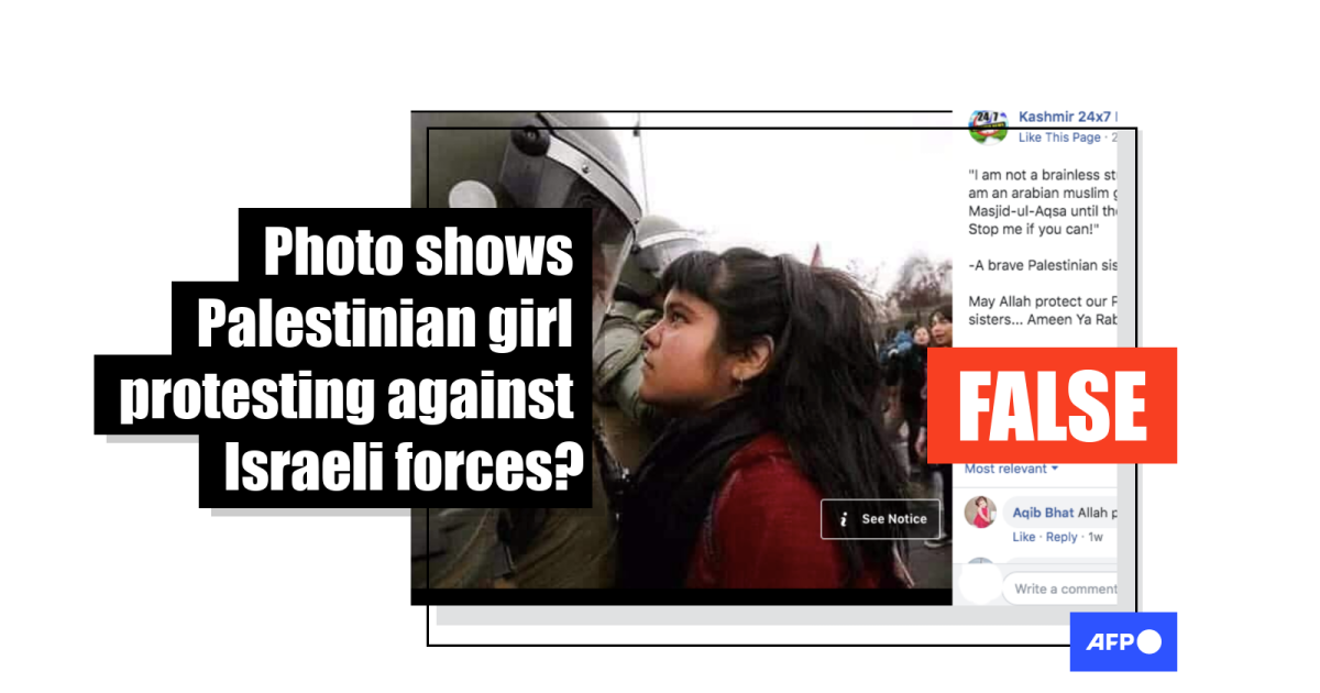 A reverse image search on Yandex found that the photo was actually taken by Reuters news agency during a political protest in Chile in September 2016. It was published on the Reuters website here.
