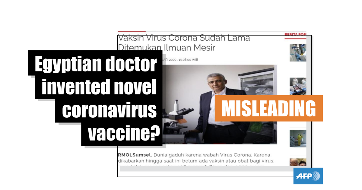 The report’s Indonesian-language headline translates to English as: “The vaccine of coronavirus has long been invented by an Egyptian scientist.”