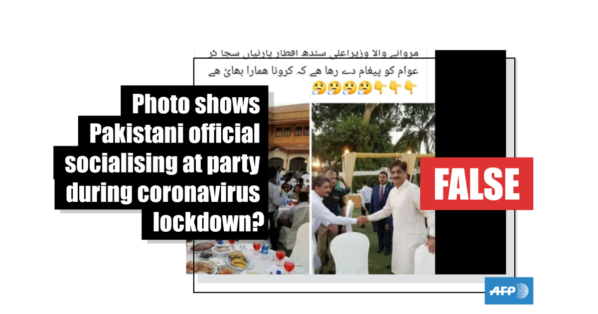 “These pictures were taken on May 23, 2018 at an Iftar party Sindh Chief Minister Syed Murad Shah had hosted at CM House. Some people have made these pictures viral again with the wrong caption of the Iftar party during the on-going Ramzan. As a matter of fact no such Iftar has been hosted at CM House,” Channa told AFP by phone on May 4, 2020.