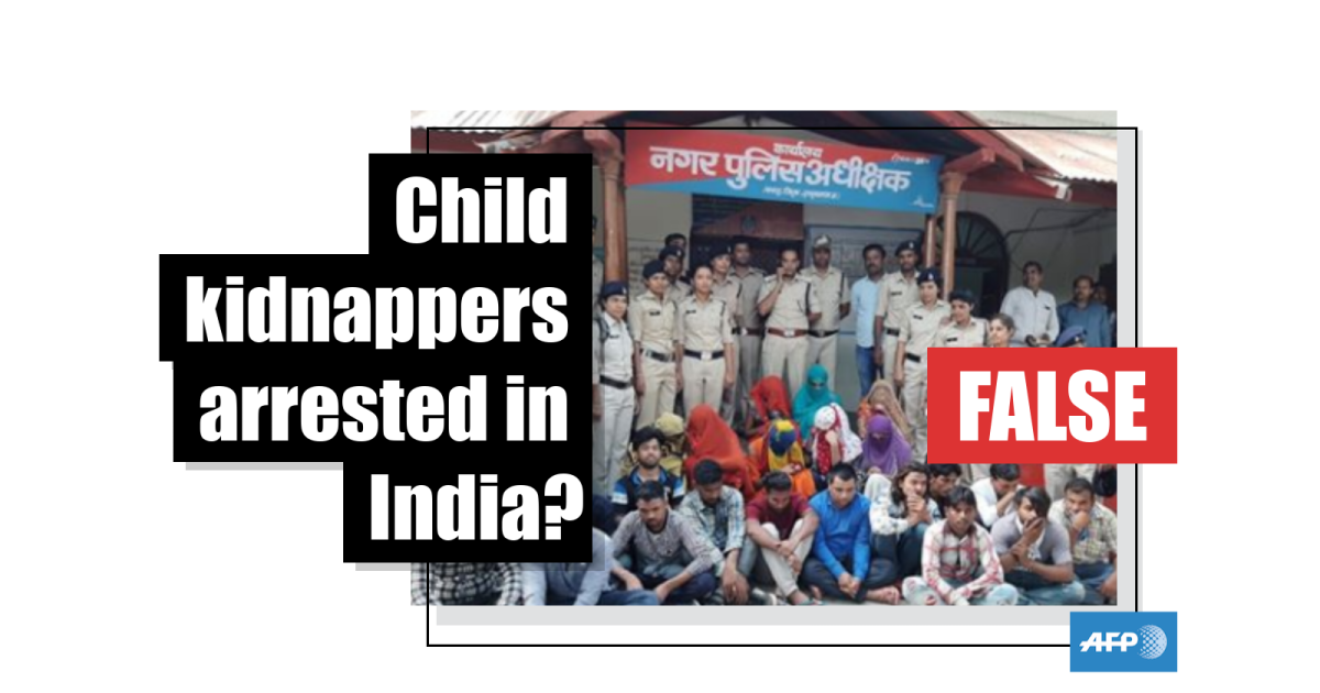 This photo shows people arrested over an alleged prostitution racket in India, not child kidnappers