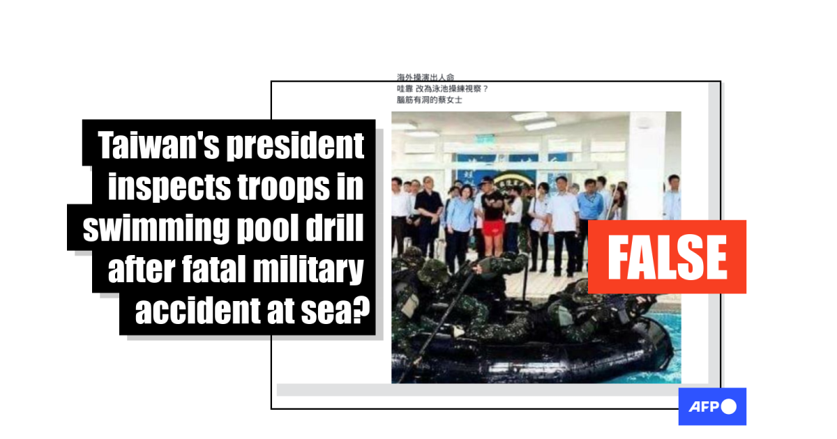 The traditional Chinese-language caption translates as: “Lives were lost during a military drill in the sea / wow / switching to troop inspection at a swimming pool? Ms Tsai [Ing-wen] is stupid”.
