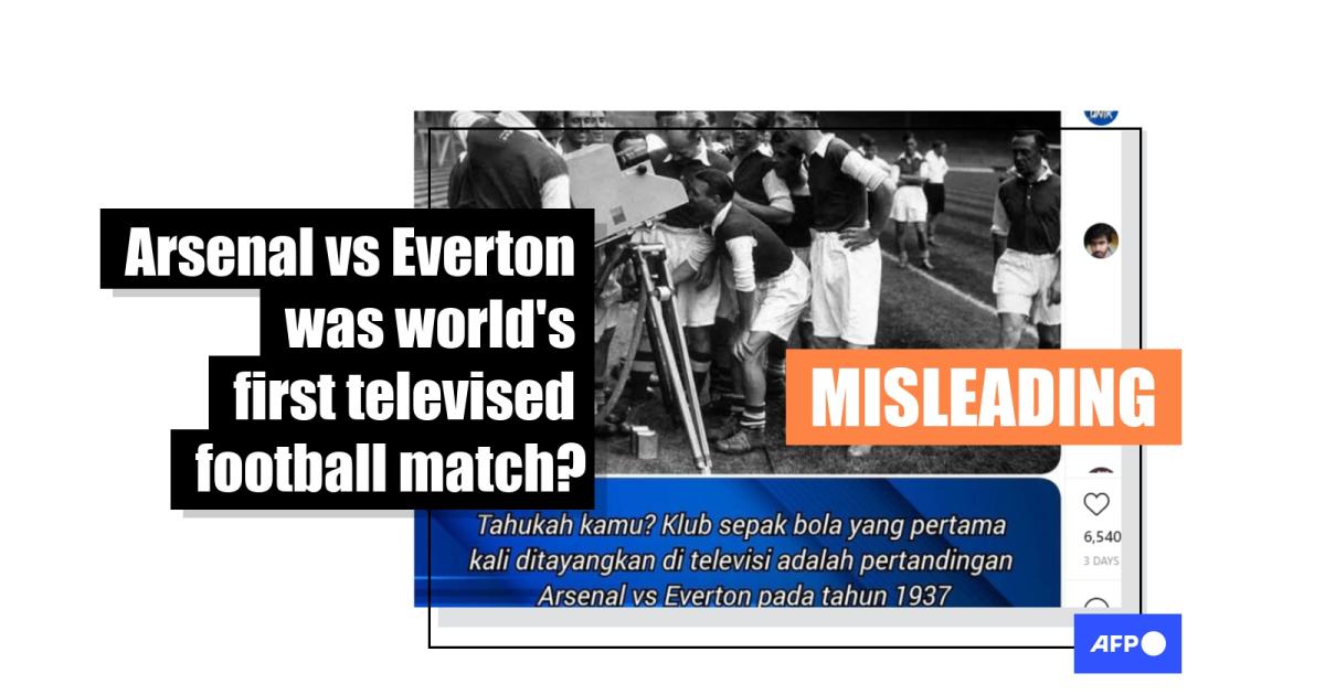 Translated to English, the Indonesian-language text underneath the photo says: “Do you know? The Arsenal vs Everton game in 1937 was the first televised football match.”