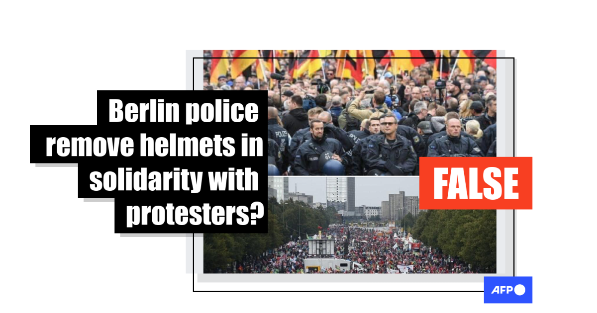 AFP published a similar photo that same day showing police officers wearing their helmets on their belts.