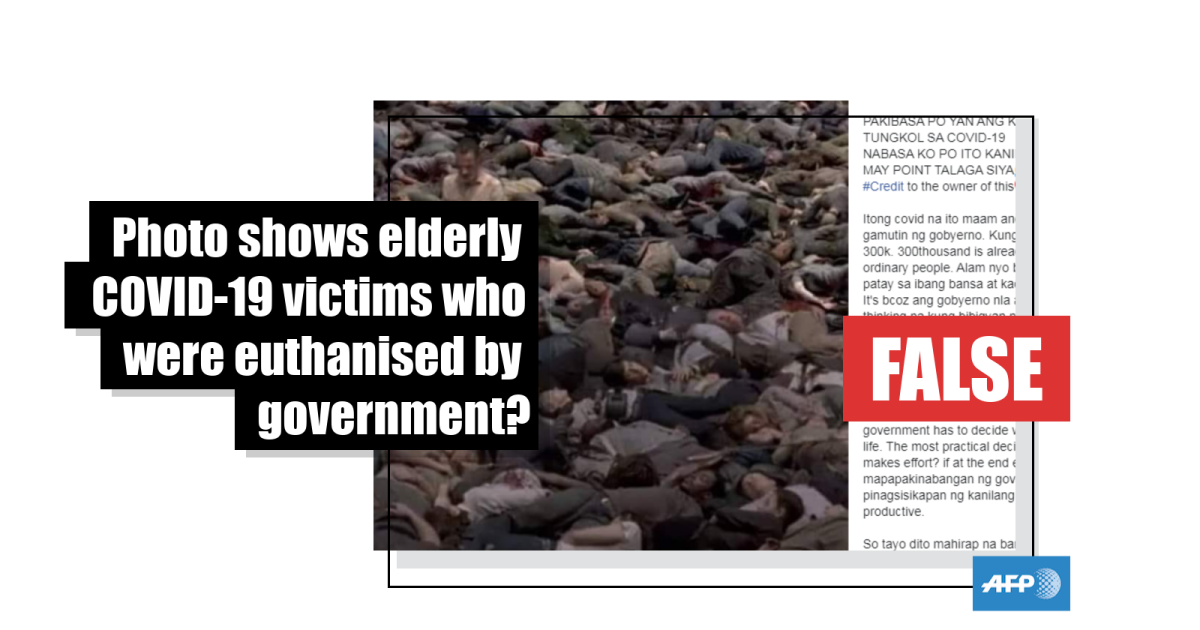 The post, written in a mix of Tagalog and English, reads in part: "Do you know why there are many dead in other countries and they're mostly the elderly? It's bcoz their governments are practical. They are thinking that if the government gives proper attention and care to seniors or the elderly, at the end the effort will be useless because they are already unproductive, so they are removed from ventilators. In short euthanasia is what they're doing that's why the dead are strewn."