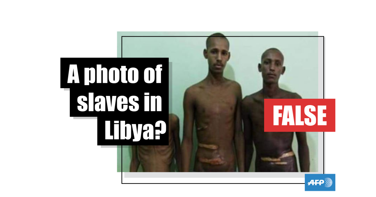 However, the picture widely shared on social media shows Eritreans who were tortured in Egypt’s Sinai peninsula, not victims of “slavery” in Libya.