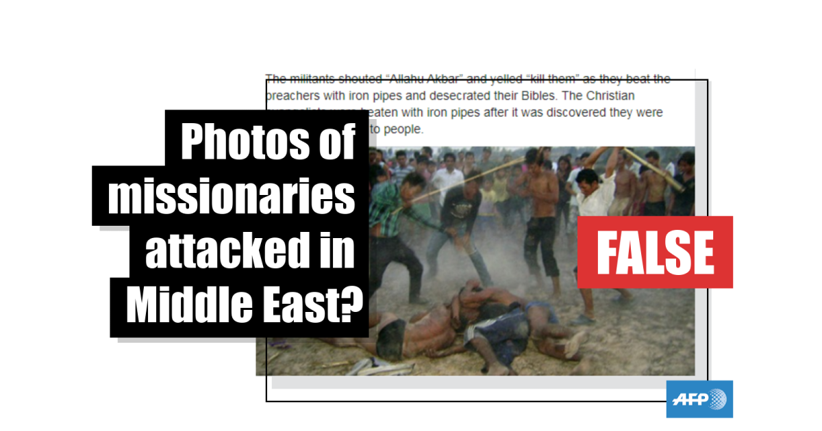 AFP has so far been unable to independently verify whether the attack described in the story really took place. It has contacted Bibles For Mideast via a form on its website but is yet to hear back.