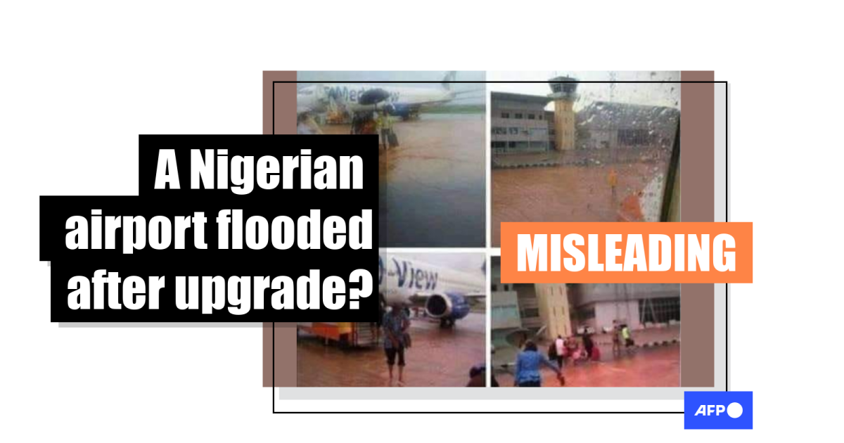 Using the Advanced Twitter Search tool, AFP Fact Check found that two of the images were published on Twitter on August 20, 2015. According to a Twitter user called @ONAmaycroft, the photo shows flooding at Enugu airport in an area passengers were expected to walk through after landing.
