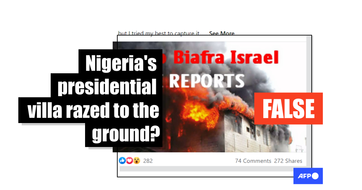 Part of the post, published on a page that calls for a separatist state of Biafra in the country's south, reads: “A fire outbreak has been reported at the Nigeria’s Presidential Villa in Aso Rock, Abuja, causing confusion among workers in President Muhammadu Buhari’s abode… Radio Biafra Israel gathered that the fire started at 4 pm as the fire service officials tried desperately to put it out..."