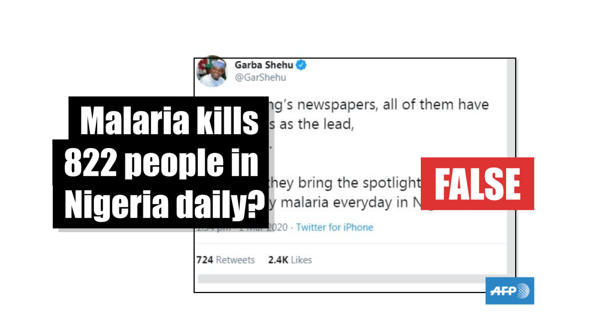 In response, Garba Shehu, special media adviser to President Muhammadu Buhari, asked on March 1, 2020 when the spotlight would shift to the 822 people “killed by malaria everyday in Nigeria [sic]”.