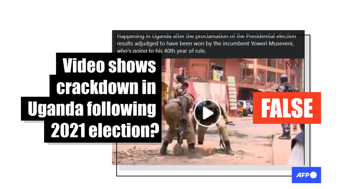 The footage, broadcast as part of a news report and featuring the logo of Ugandan television station NTV Uganda in the top right-hand corner, resurfaced online shortly after the country’s electoral commission declared incumbent Yoweri Museveni the winner of the 2021 presidential election, held on January 14.