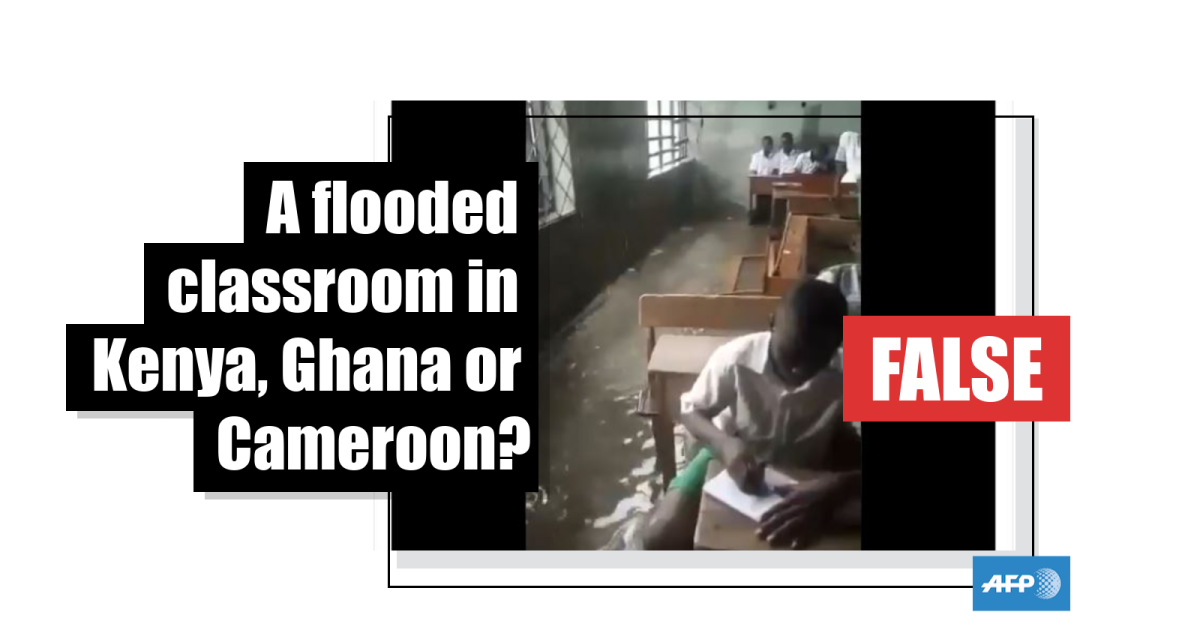 Social media posts have located this flooded classroom in various African countries. It was actually filmed in Nigeria