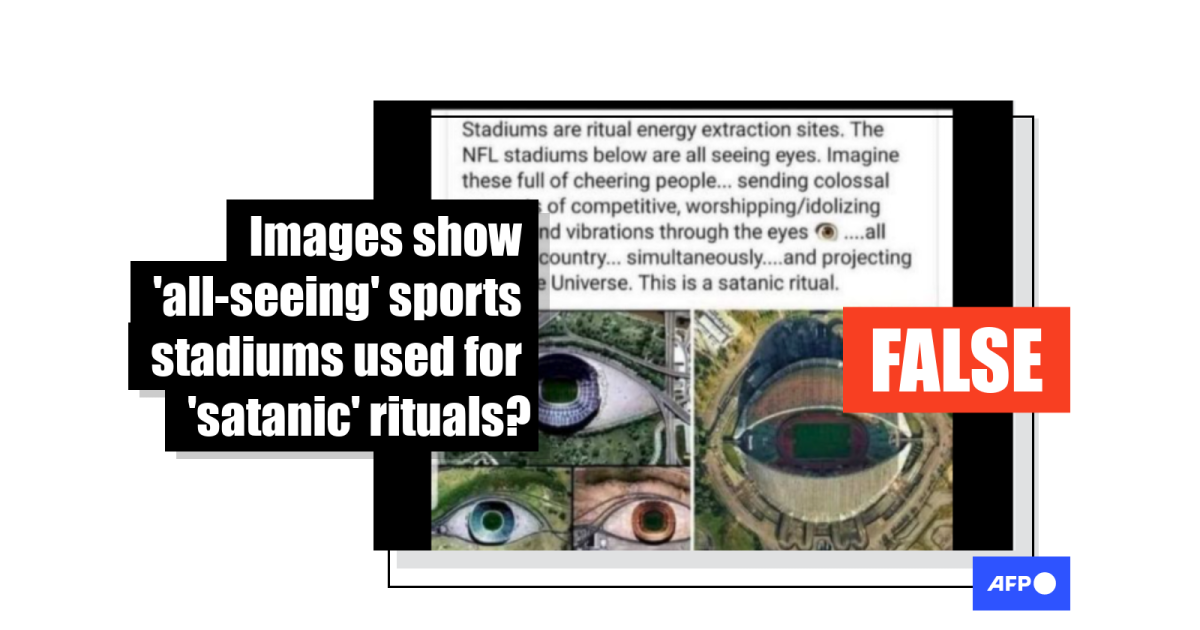The post, which purports to show images of four NFL stadiums, claims they are being used as “ritual energy extraction sites”.
