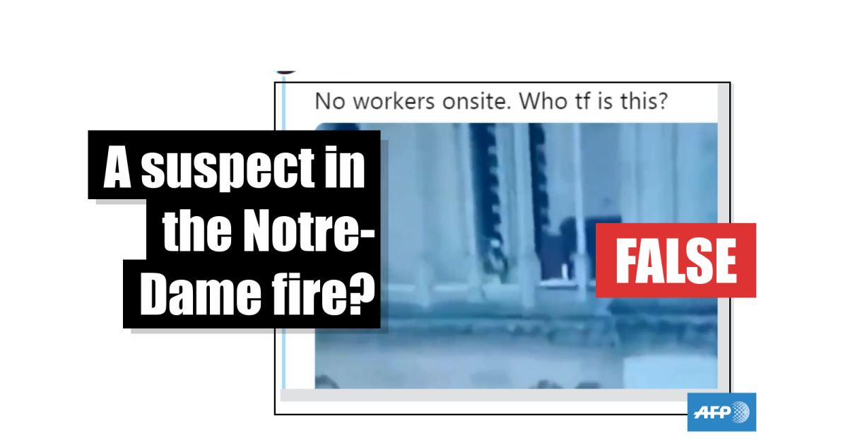 The video, posted by US-based Twitter user @TipsyPianoBar (archived link) on Tuesday has racked up more than 10,000 shares. The footage is accompanied by the caption, “No workers onsite. Who tf is this?” The low-quality video, which appears to have been filmed on a smartphone, shows a man wearing a high-visibility jacket walking along a passage in one of Notre-Dame’s towers.