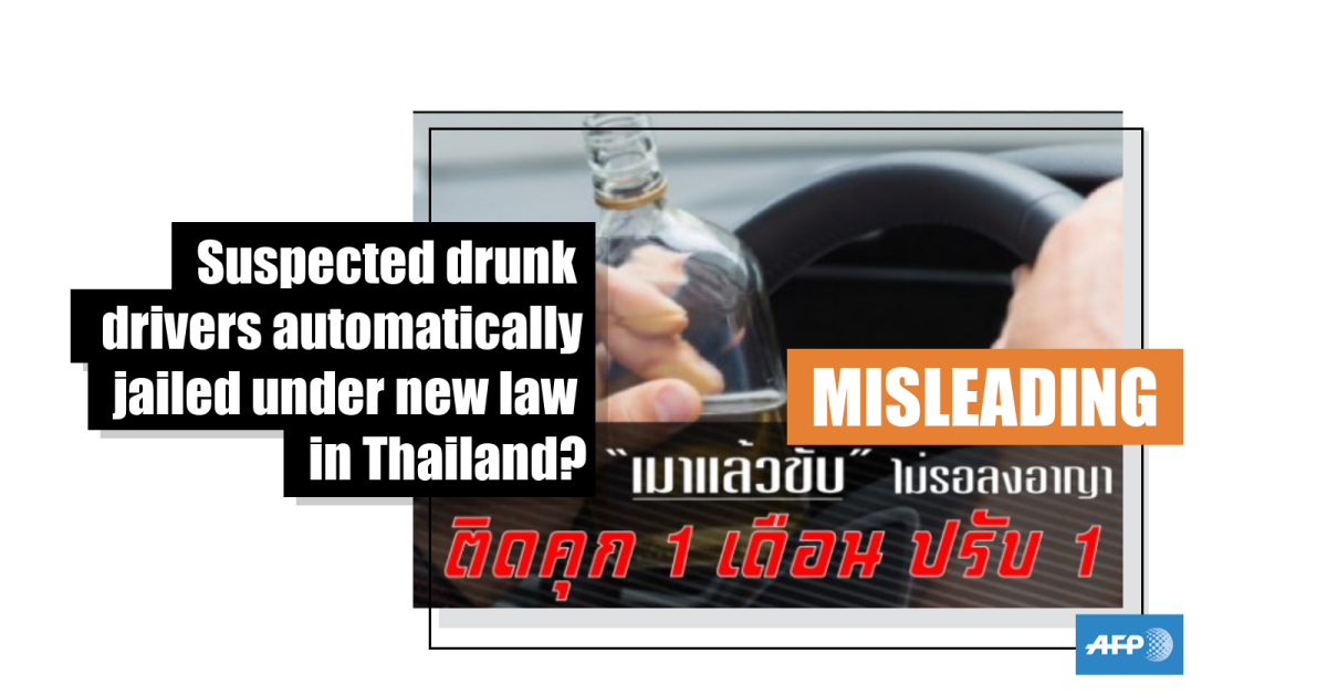 A similar misleading claim was also published in Facebook posts here and here, alongside graphics which contained a mixture of accurate and inaccurate information about Thailand’s drunk driving laws.