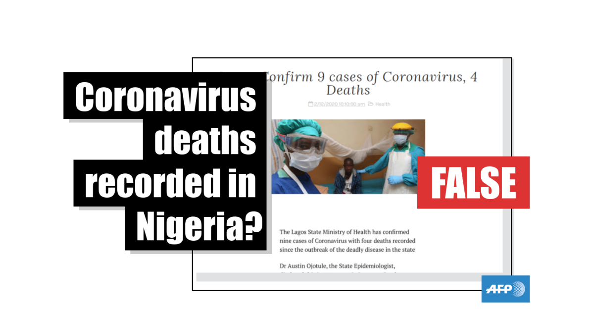 The story alleges a Lagos state epidemiologist called Austin Ojotule confirmed in a statement there had been nine confirmed cases of novel coronavirus, of which four had resulted in deaths.