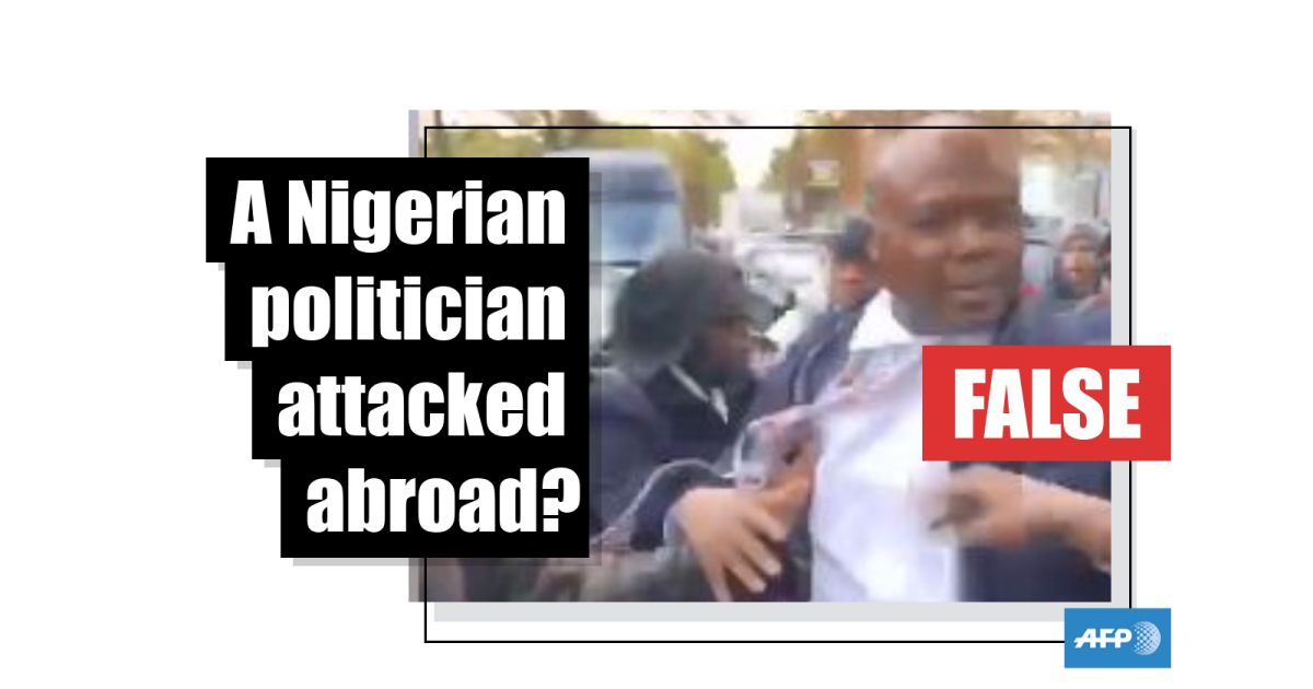 The earliest version of the footage AFP found was a video posted to Facebook on November 14, 2019. The French caption translates as ‘The #Governor of #Kinshasa #Gentiny #Ngobila was apparently beaten up in public in #Paris by Congolese opposition activists’.