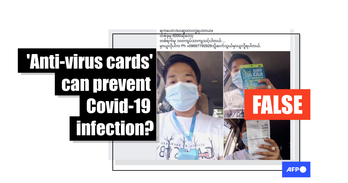 However, the claim is false: scientists and medical experts told AFP the cards do not protect people from Covid-19 infection or any other illness.