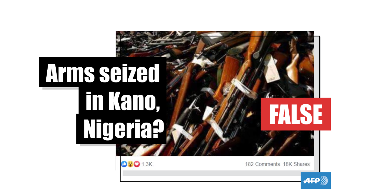 The picture was posted on Facebook by Ibe Caleb in November 2015 with the caption: “Arms discovered and seized by the Nigerian Customs Service in Kano!!”