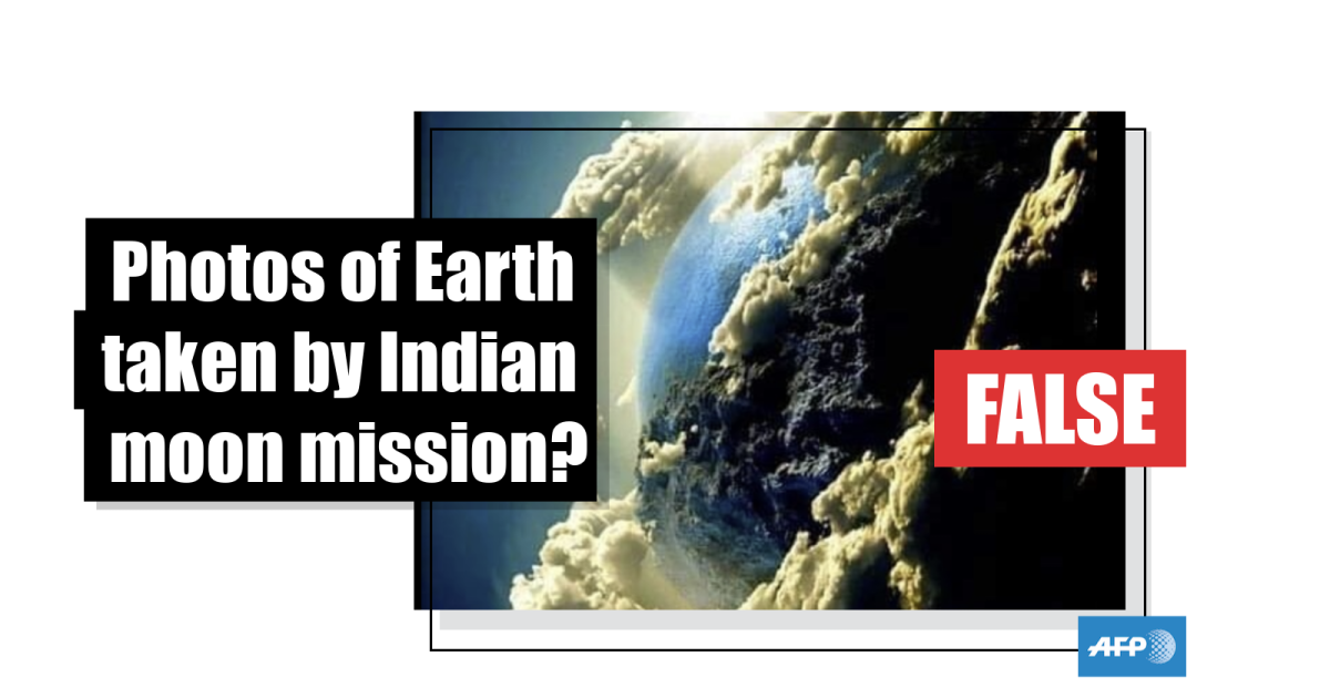 The caption states: "First photograph of earth, sent by Chandrayan 2. #photography, #earth, #chandrayan2."