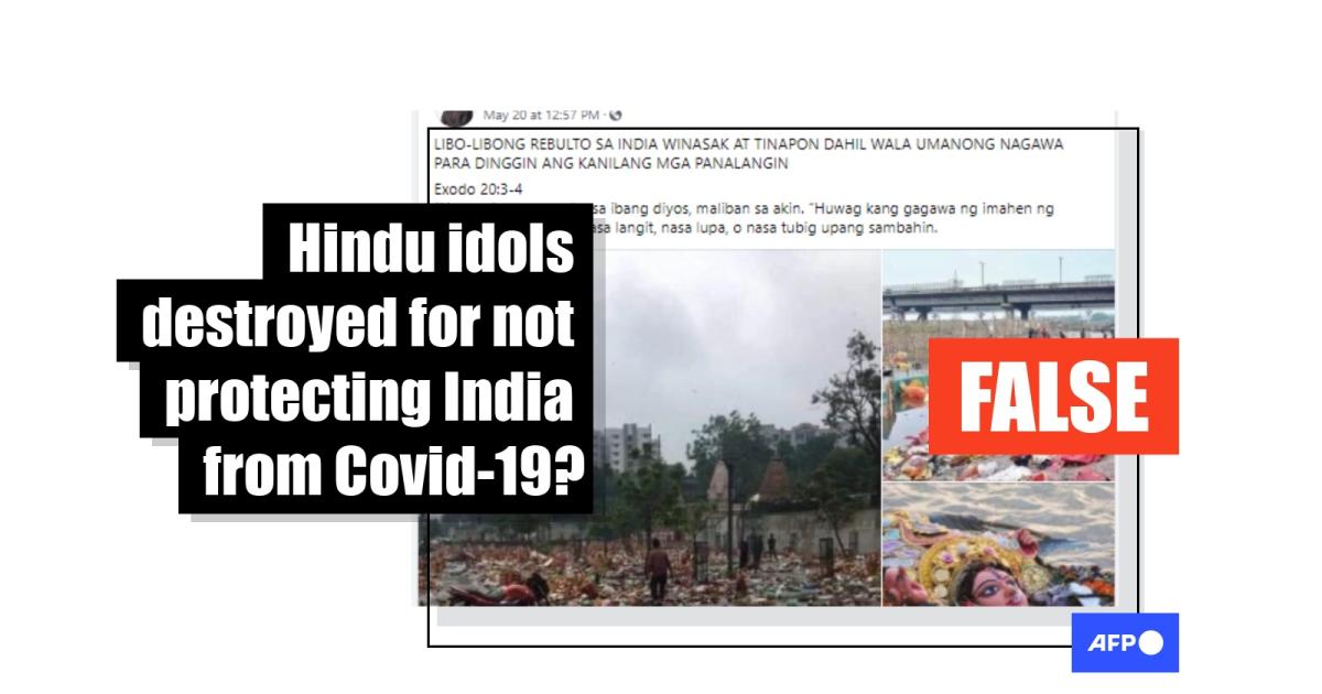 “Thousands of idols were destroyed and thrown away in India because they could not answer the people’s prayers,” reads the Tagalog-language caption accompanying four images posted here on Facebook.