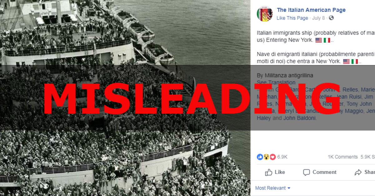 “This scene typifies how a boatload of Italian Immigrants would have looked as they sought a better life,” the caption of this Facebook post reads. The same photo was shared over 60,000 times across different social networks in English, Spanish, French, and Italian.