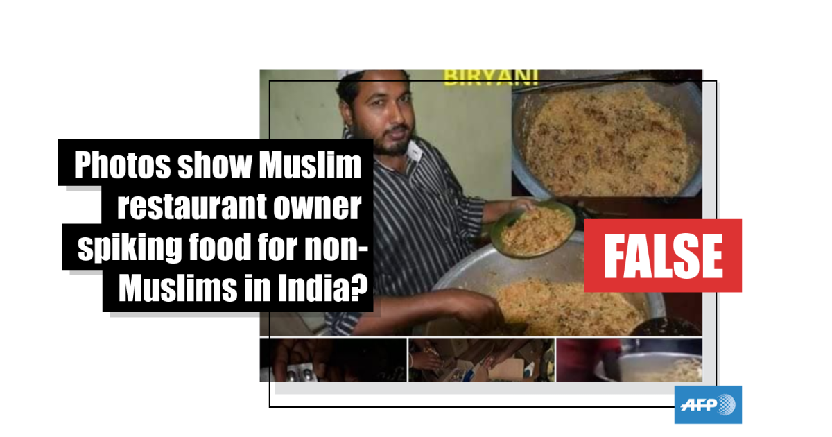 These photos are unrelated to the restaurant cited in misleading social media posts -- police in India refuted the claim as ‘fake news’