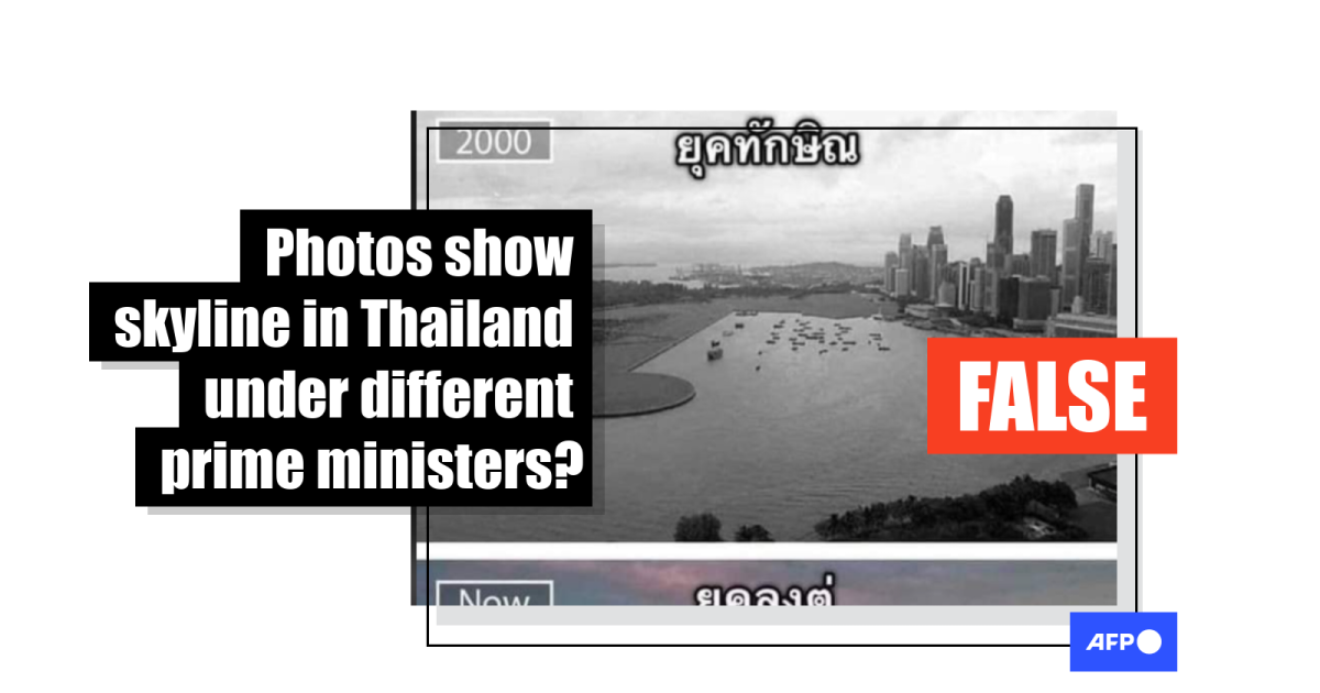 These photos do not show skylines under different prime ministers in Thailand -- they were taken in Singapore