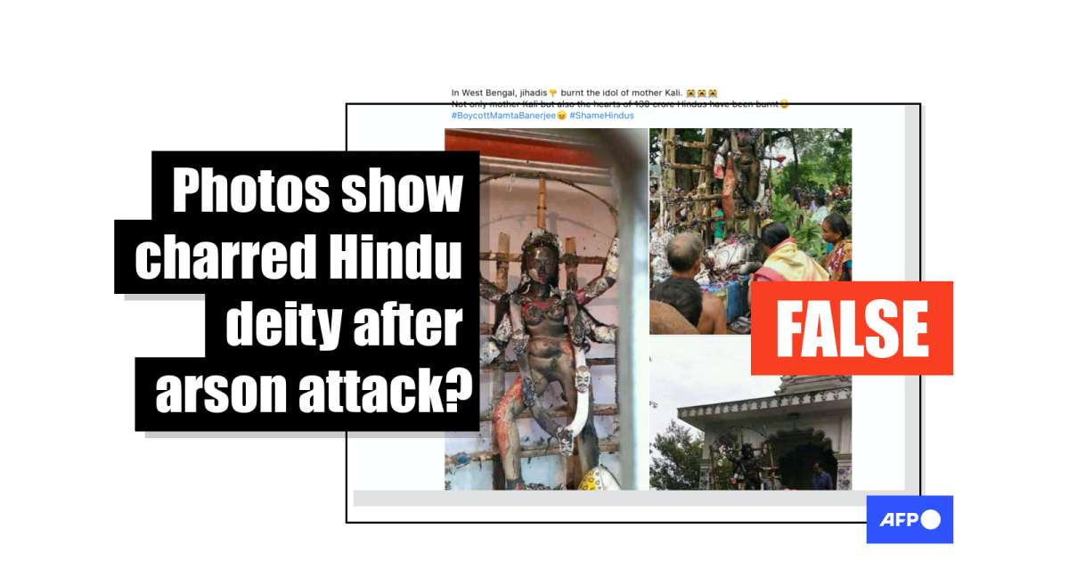 The post’s caption reads: “In West Bengal, jihadis burnt the idol of mother Kali. Not only mother Kali but also the hearts of 140 crore Hindus have been burnt.”