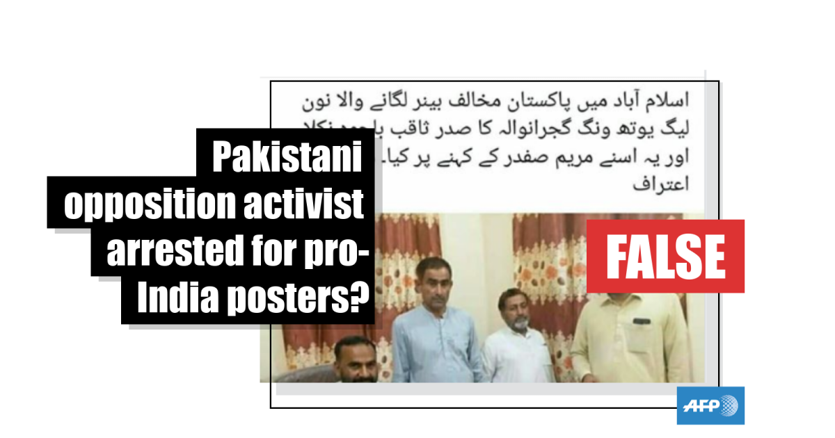 But the two men in the photograph shared in the misleading social media posts were not arrested for erecting the posters.