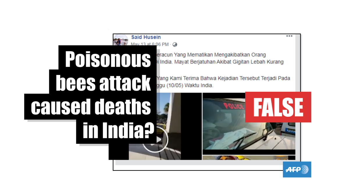 A similar claim about killer bees in India was also shared with this video on Facebook on May 13, 2020. It includes two of the clips in the other misleading post and adds two different ones.