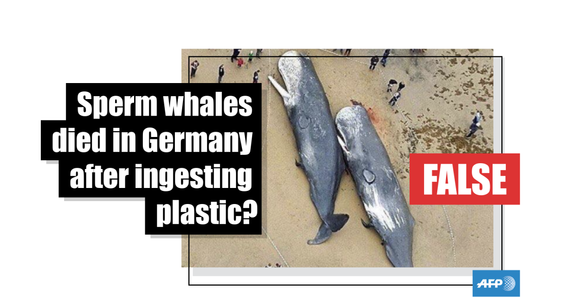 The caption alongside the post states: “Two dead sperm whales in Germany with stomachs full of plastic & car parts...”