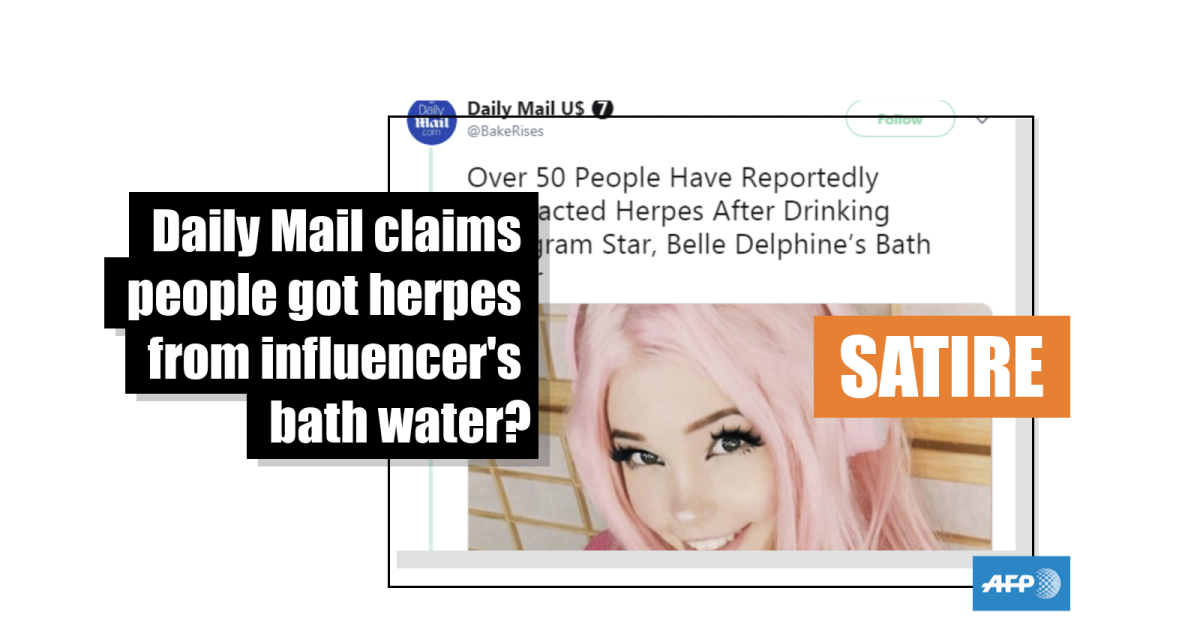 The caption, published above a photo of social media star Belle Delphine, states: “Over 50 People Have Reportedly Contracted Herpes After Drinking Instagram Star, Belle Delphine’s Bath Water”.