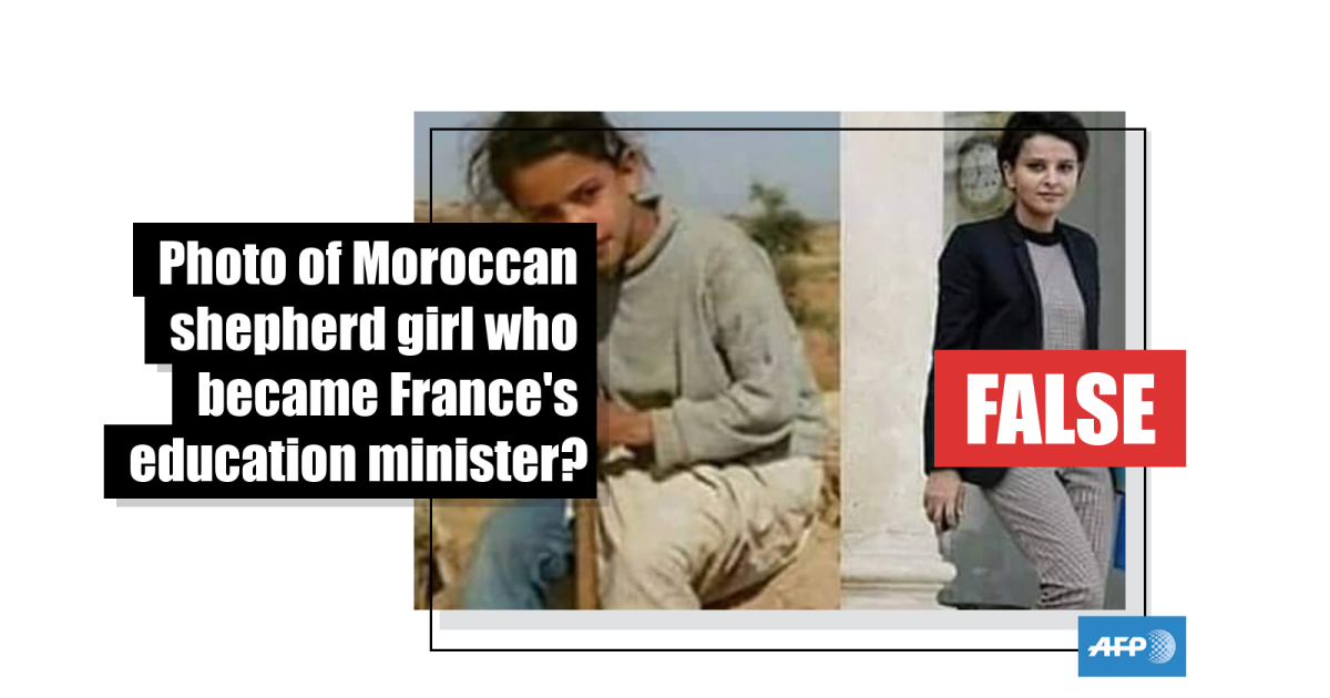 Text superimposed on the collage states: "20 years ago she was herding sheep in Morocco, now she is France’s education minister."