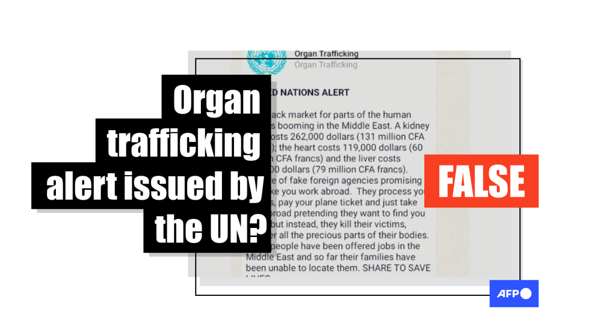 The United Nations denies issuing an organ trafficking alert for the Middle East