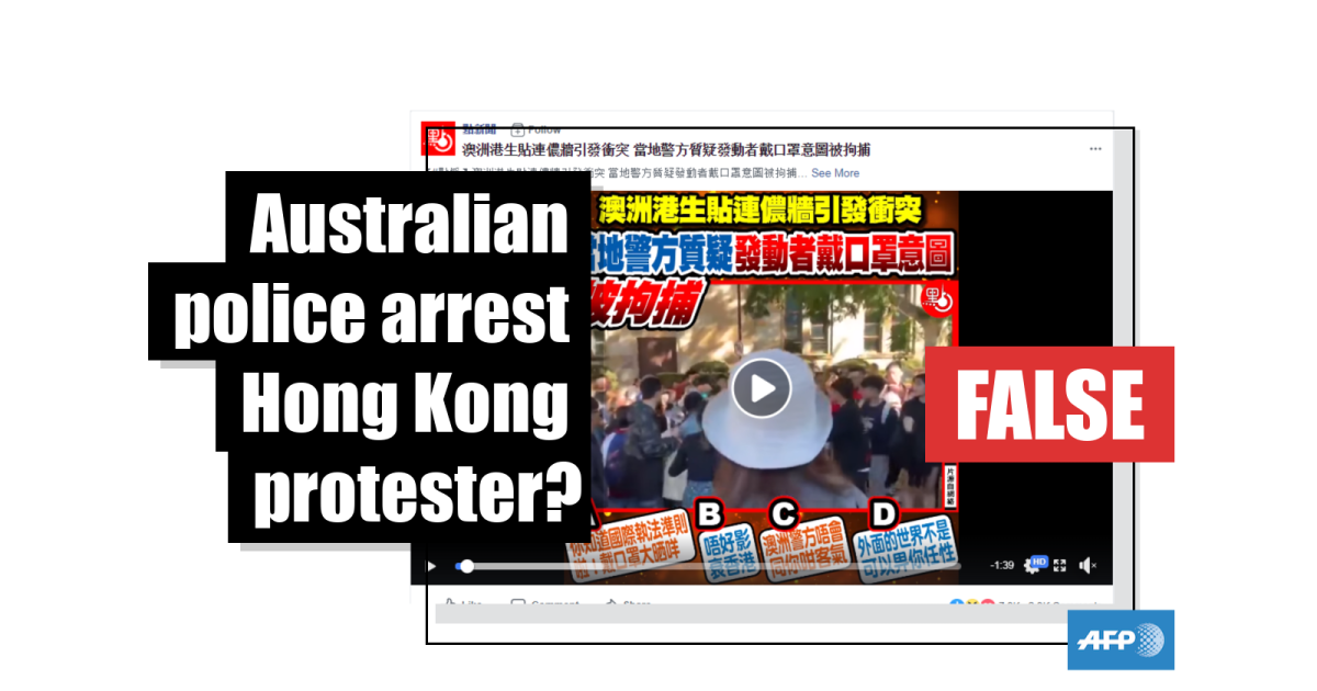 The misleading Facebook video is made up of two separate clips, filmed in different times and places -- the first, from the start to the 38 second mark, shows scuffles that occurred at the University of Queensland on July 24, 2019.