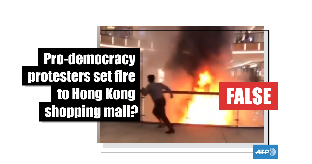 This video actually shows a blaze in a shopping mall in Malaysia, not Hong Kong