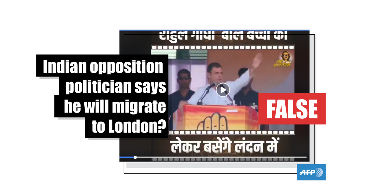 In the edited misleading clip, Gandhi appears to say: “I will go to London, my children will go to study in America, I have nothing to do with India. I have millions of rupees, I will go anytime.”