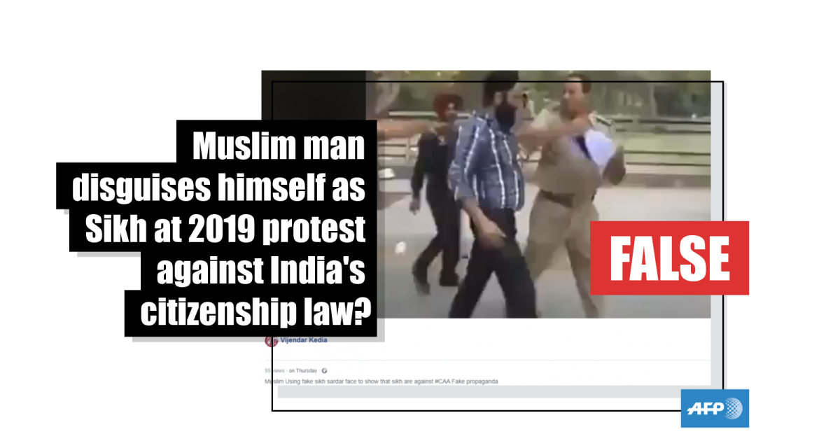 A post’s caption reads in English: “Muslim Using fake sikh sardar face to show that sikh are against #CAA Fake propaganda”.