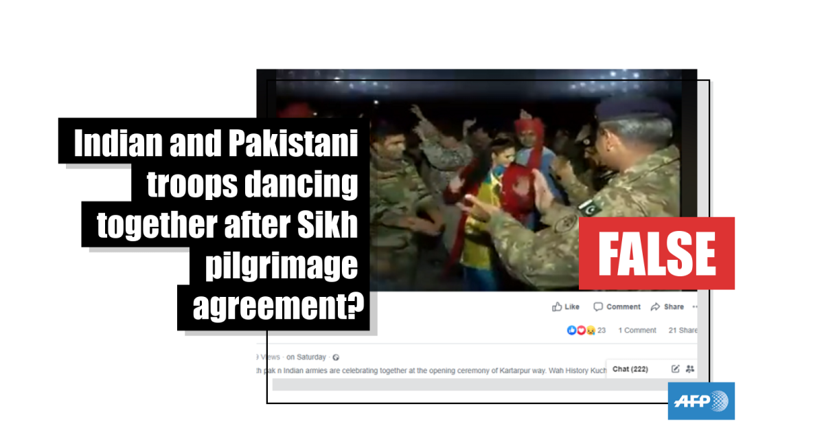 The claim is false; the video has circulated online since at least 2018 about troops dancing in Russia, more than one year before the Kartarpur agreement was signed.