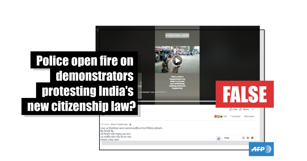 The video also includes a superimposed geotag that claims the location is in the northeastern state of Assam, which has experienced deadly unrest in recent weeks in response to the new law, AFP reported here.