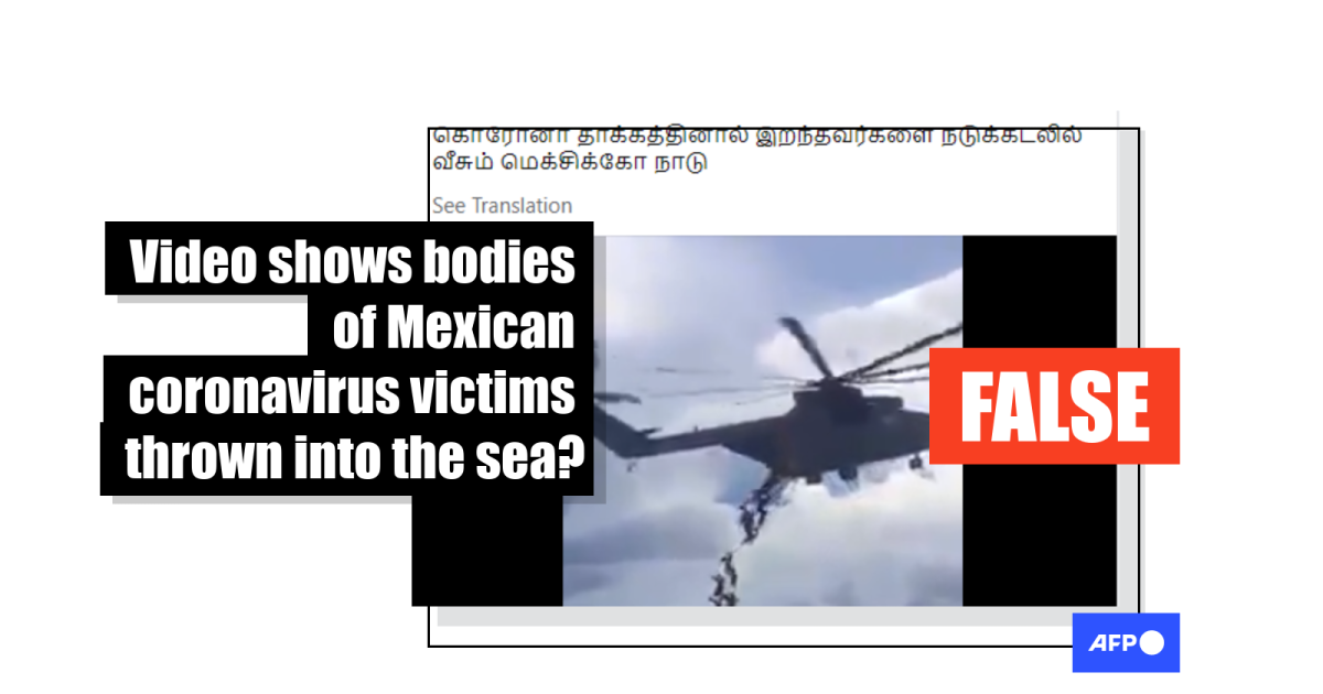 The Tamil-language caption translates to English as: “Mexico is throwing those who died of Covid-19 in mid sea.”