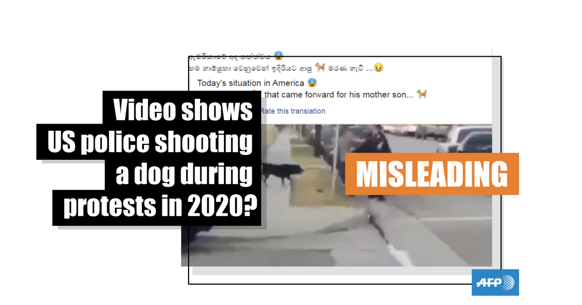 The post’s Sinhala-language caption translates to English as: “Situation in America today / The way a dog that came forward on behalf of its master was killed.”