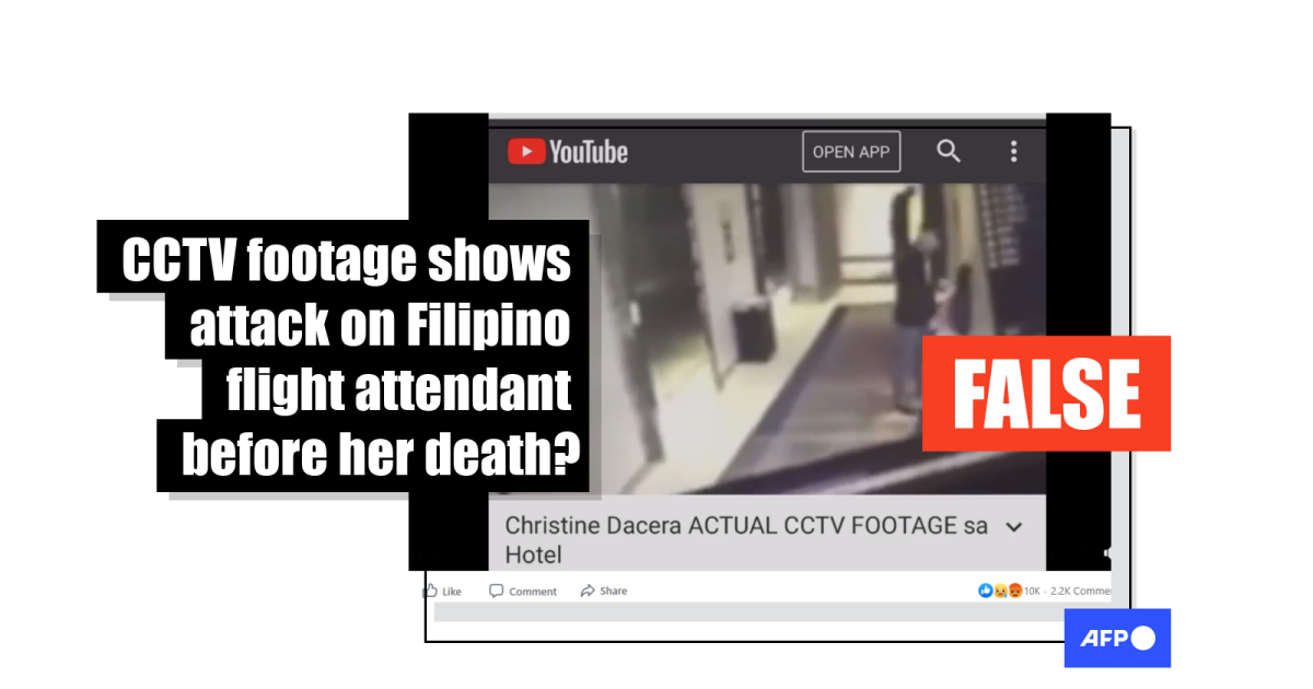 This January 7, 2021 report by Philippine news organisation ABS-CBN features portions of surveillance footage taken prior to Decera’s death, showing a different hotel lobby to the one seen in the video in the misleading posts.
