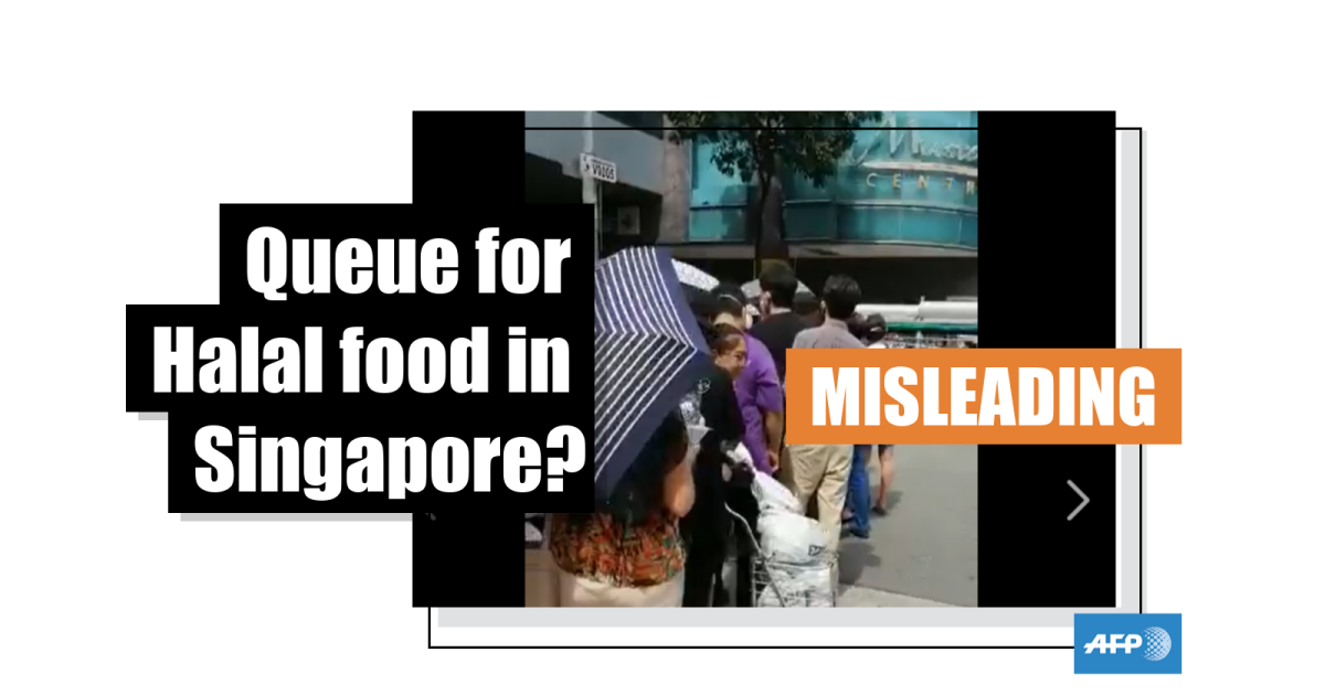 The post’s caption, written in a combination of Malay and Thai language, translates to English as: “Singaporean people queued up to find Halal food at Mustafa Centre, they don’t dare to eat non-halal food anymore.”
