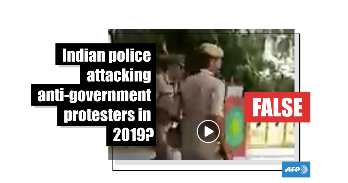 The claim is false; the video shows police in Aligarh, a city about 600 kilometres (370 miles) north of Bhopal. The footage shows police attacking a Hindu group who were protesting outside the office of the local police chief in June 2018.